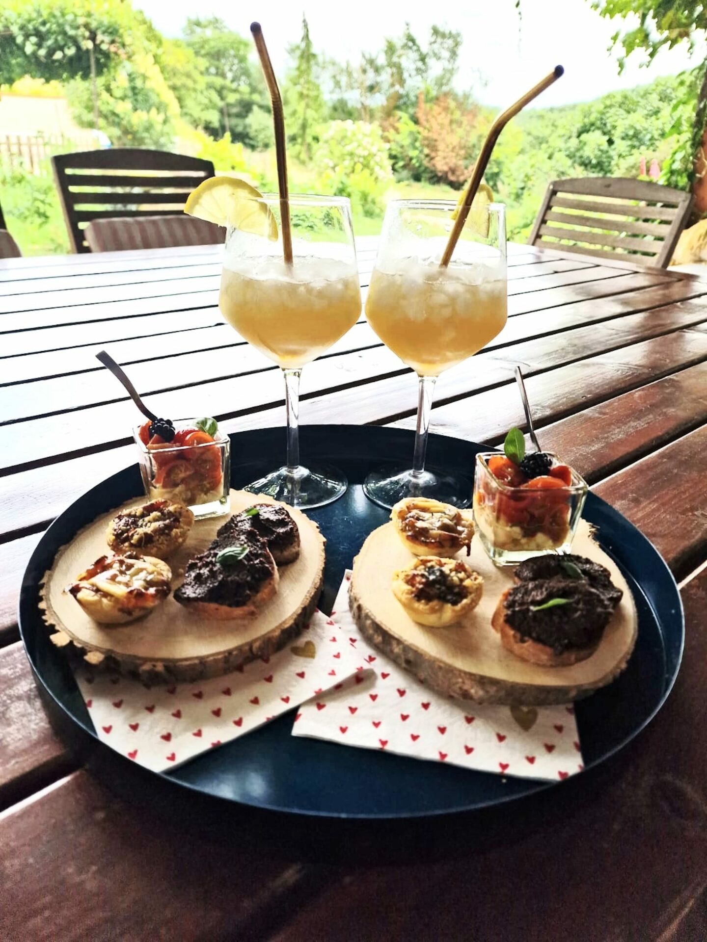 Nous vous proposons des prestations culinaires sur mesure durant votre séjour « Les pieds en éventail » : petit déjeuner, brunch, planches apéritives, boissons locales et maison, repas.